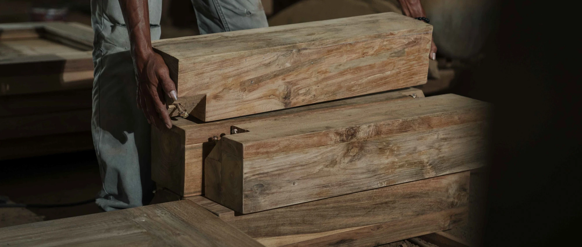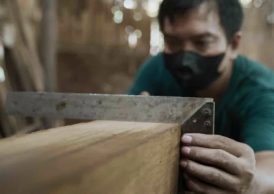 The reclaimed teak furniture we craft at Nusantara Lifestyle embodies a deep respect for Indonesia’s nature and traditions. Sourced from disused structures, this remarkable wood is known for its exceptional strength and durability, making it the perfect material for our timeless furniture pieces. Each plank carries its own history, allowing us to connect our handcrafted furniture to the rich stories of Indonesia’s past.