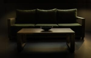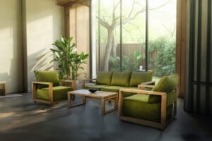 - Sofa cushions use sustainable natural latex.