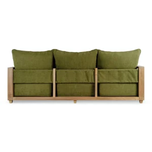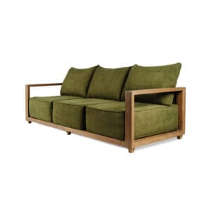 Stunningly comfortable oversized sofa, with a sturdy frame hand-made from reclaimed teak, this 3-seater reclaimed teak indoor sofa offers pure comfort and space for a relaxing experience. Upholstered with sustainable natural latex, and using premium fabric from recycled sources, this recycled teak wood sofa is a statement piece in any home.