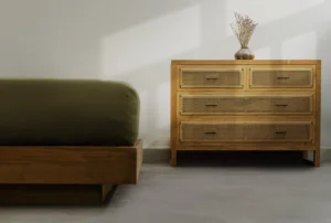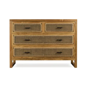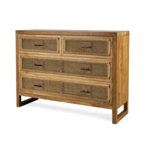 Looks and functionality collide in Alami’s reclaimed teak wood set of drawers, with this Indonesian dresser constructed from recycled teak and hand-woven paper rope drawer panels. Plenty of storage space is capped off with unique brass handles, resulting in a beautiful and functional piece of bedroom furniture.