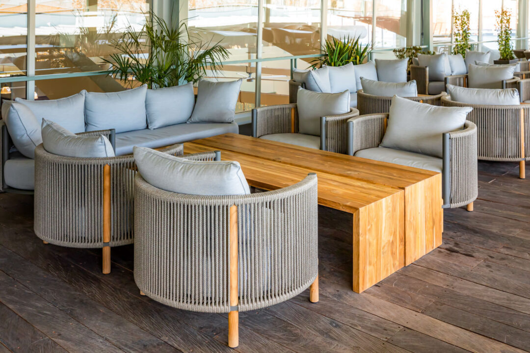 The Terrace in Bazari on Orbeliani market brings a lighter, more boho feel in a semi-outdoor setting, making for one of Tbilisi’s most sought- after atmospheres every evening. Nusantara Lifestyle provided a range of combination reclaimed teak and rattan chairs and sofas, as well as beautiful reclaimed teak tables, with the materials perfect to produce furniture for the semi-outdoor setting.