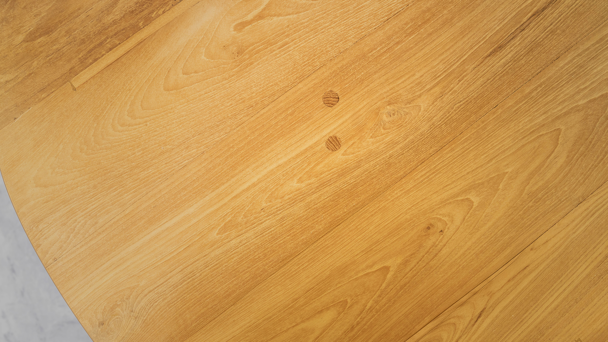 You’ll often see old grooves, holes or nail marks in reclaimed teak, or notice small saw marks, old tool lines, or other surface features. We sand or fill them carefully, but they don’t disappear entirely — and we don’t try to make them either.